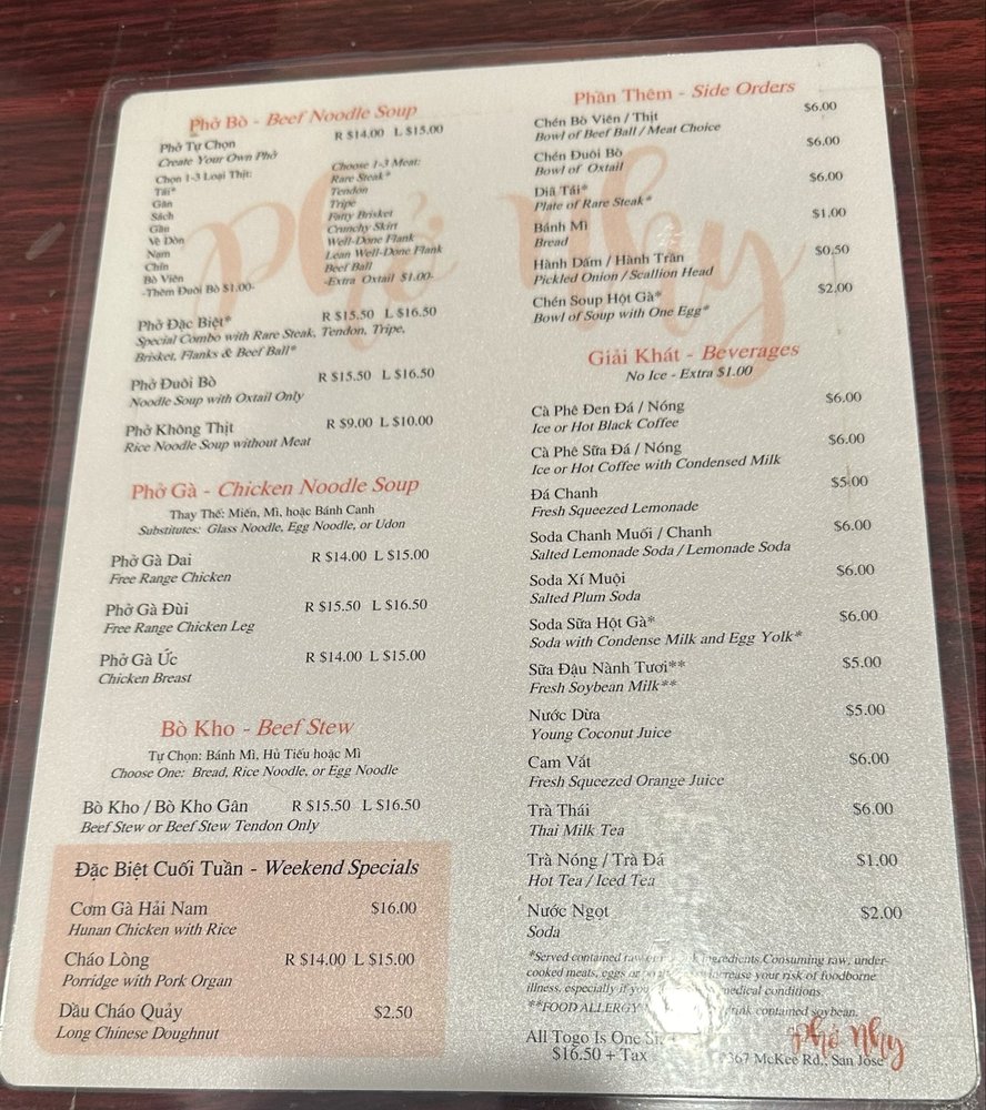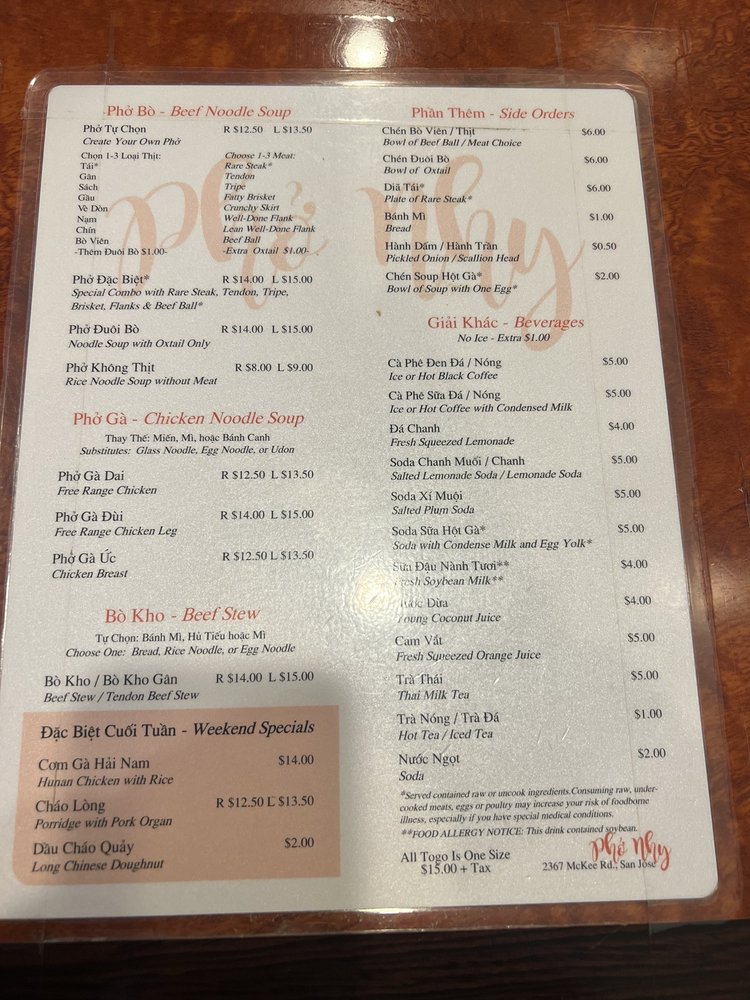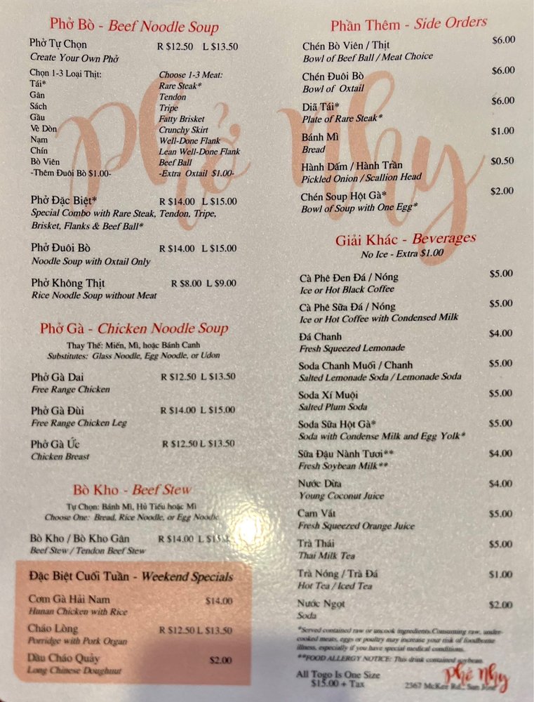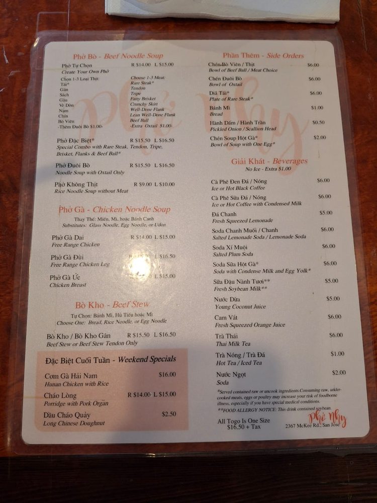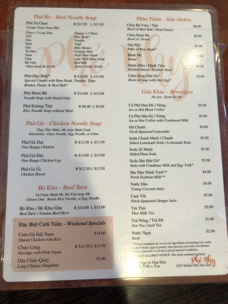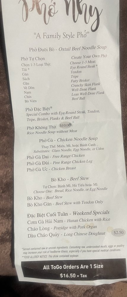 Welcome to Pho Nhy, a delightful Vietnamese culinary gem nestled in San Jose, CA, that specializes in breakfast and brunch inspired by authentic soup dishes. With a warm, casual atmosphere, Pho Nhy makes an ideal spot for families and food enthusiasts alike. The menu features a variety of pho options, ensuring there’s something for everyone, including delectable vegetarian choices.